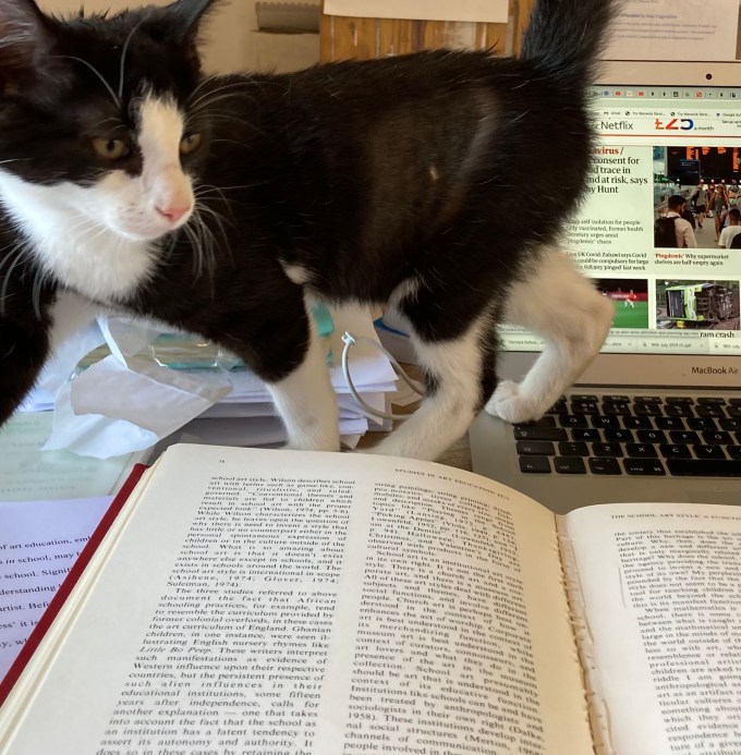 Oh and I didn’t really know what to put as a picture, then my kitten popped up to have a sniff at Studies in Art Education vols,1995-17 which includes Efland’s paper – and who doesn’t like a kitten? (rhetorical question!) – so she gets a feature.